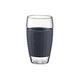 The Bodum Pavina Glasses are not only practical, they also make a statement. The silicone sleeve functions as a grip while simultaneously protecting your hand from excessive heat and adding a splash of vivid color to your dining and drinking experience. The Bodum Pavina Glasses are made of borosilicate glass and silicone and all parts, including grip, are dishwasher safe. Available in grey.