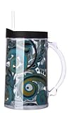 Printed Large Paisley on PVC insert has been placed between the two walls of a double-wall plastic tumbler with straw and twist-on lid.