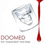 Cool crystal skull shot glass A skull-shaped inset into the glass features this item Inspired by the Mayan Skull of Doom Once filled with your beverage, it appears to be a skull hovering eerily in the center of the glass Will certainly have the power to draw attention at any party It is said that the Mayan Crystal Skulls have mysterious powers This crystal-clear skull shot has a magical power all its own - to get you magnificently drunk Skull holds 2 ounces of drink Add some paranormal to your next party with this cool glass Also will be a great addition to your home bar Size: 71 x 67mm/ 2.8 x 2.6-inch Color: clear