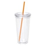 Eco To Go Cold Drink Tumbler - Double Wall -24oz. Capacity - Clear - Orange Straw