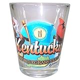 Here's a very rare and hard to find souvenir collectible shot glass from Kentucky. It's a 5x6cm style shot glass measuring 2.25" tall and 1.8" in diameter.