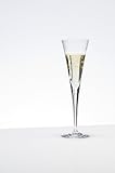 The Riedel Ouverture Toasting Flute set features two non-lead, machine-blown, crystal clear toasting glasses with long pulled stems. Elegantly standing over nine inches tall, these beautiful celebratory glasses taper in as they flow downwards toward a bright crystal base.