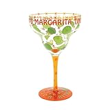 It's margarita time. I like to drink you with a little salt and lime. This sassy hand painted margarita glass hold 14-ounce of your favorite margarita with style, hand painted with It's Margarita Time, Tequila, Salt, and Lime around the top edge of the glass and a fun lime design around the glass.