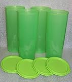 Classic Tupperware 16 ounce tumblers with coordinating seals. Beautiful green color. Each tumbler stands approx 6 1/2 inches high. A set of 4 "G" seals, are included. The 3 inch diameter seals will also fit tupperware 4oz snack cups, bell tumblers, 12 ounce tabletop tumblers. Tumblers are dishwasher safe.